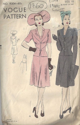 1940s Ww2 Vintage Sewing Pattern B36 Two Piece Dress 1760 Ebay